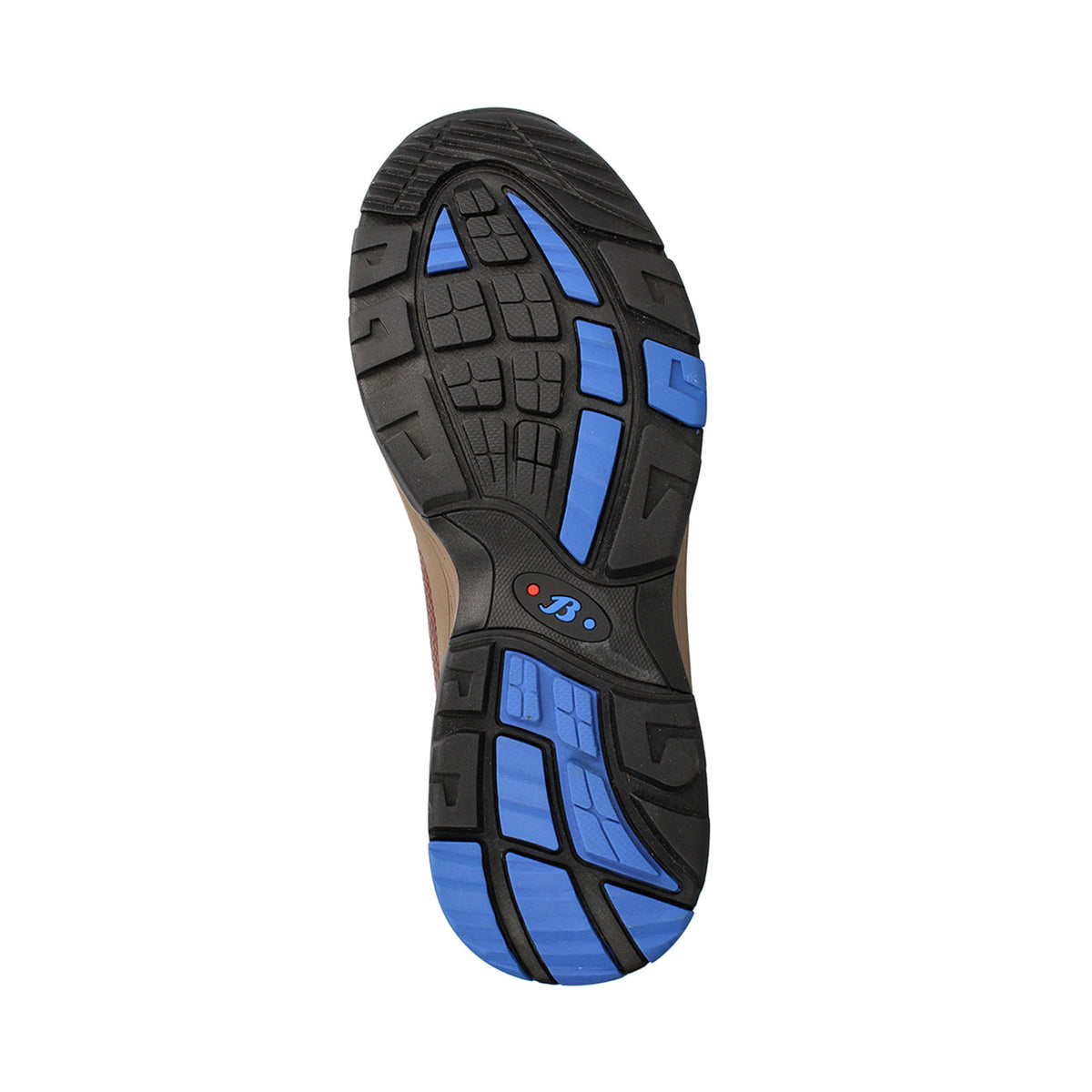 Su suela de caucho ACN, con resistencia a hidrocarburos y bajo índice de desgaste (<150 mm³), está diseñada con tecnología antideslizante SRC, cumpliendo pruebas en superficies de cerámica con detergente (NaLS) y acero con glicerina.