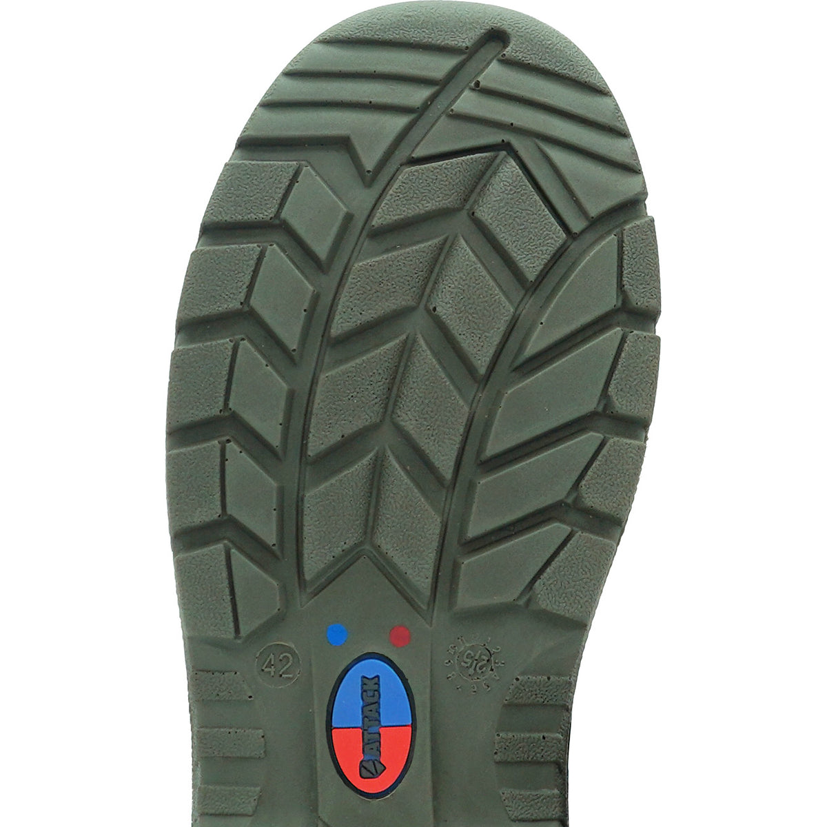 La planta de poliuretano bidensidad proporciona excelente resistencia a hidrocarburos y agentes químicos, junto con absorción de impacto en el talón, mejorando la estabilidad y reduciendo la fatiga durante la jornada laboral.