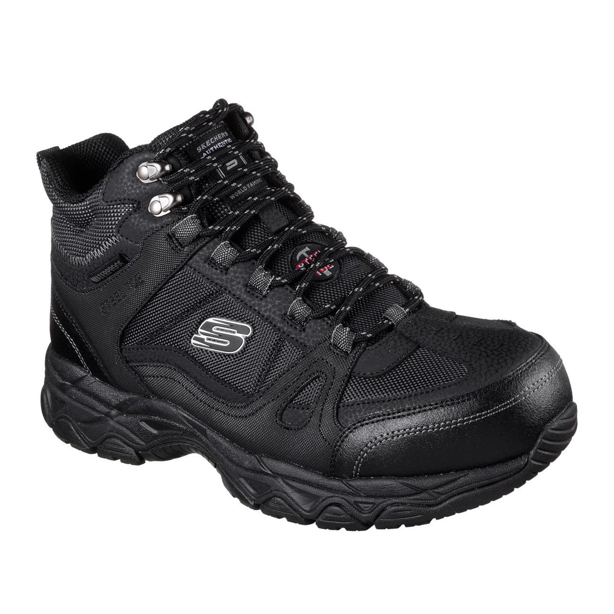 Mantente cómodo y seguro con Botín Skechers Ledom. Estos zapatos combinan cuero suave y tela de malla transpirable para un ajuste ligero y cómodo. Son impermeables, con punta de acero y dieléctricos, además tienen una mayor resistencia a los hidrocarburos. La suela antideslizante especial está diseñada para superficies aceitosas tanto secas como mojadas. Plantilla Memory Foam para máxima comodidad y ajuste, además de una entresuela amortiguadora para amortiguación de impactos. ¡Consigue lo mejor en estilo y seguridad con Botín Skechers Ledom!