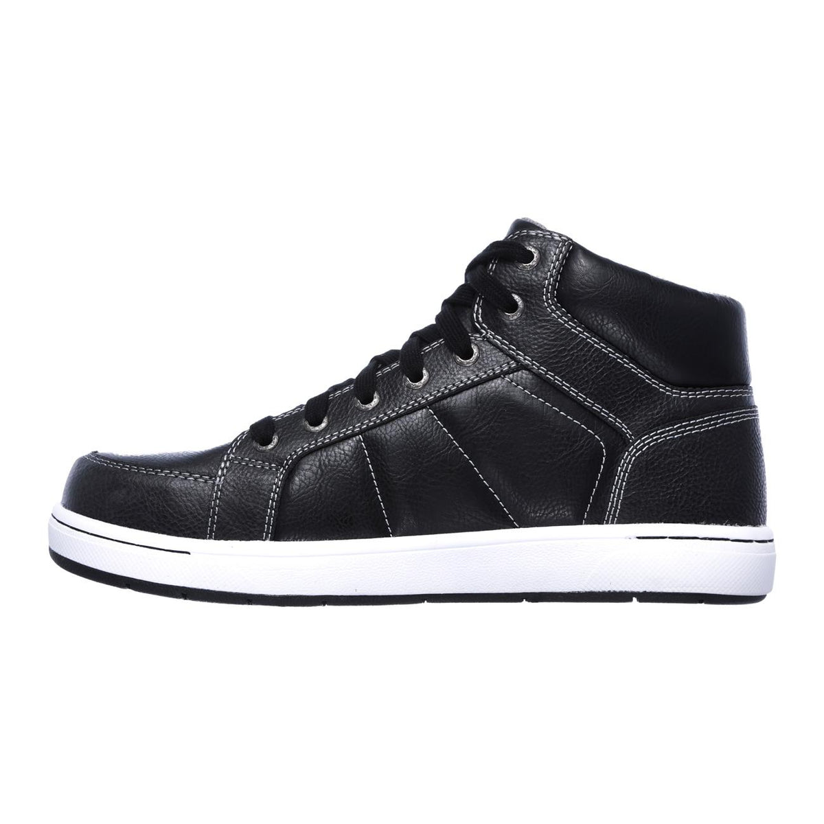 Combina seguridad con el estilo clásico que te ofrece Botín Skechers Stirling. Cuero suave y acordonado al frente para un look casual y sobrio con refuerzos de cuero. Plantilla Memory Foam by Skechers para una mayor comodidad y una suela antideslizante con puntera de seguridad de acero para tu protección. ¡Experimenta total confort y seguridad!
