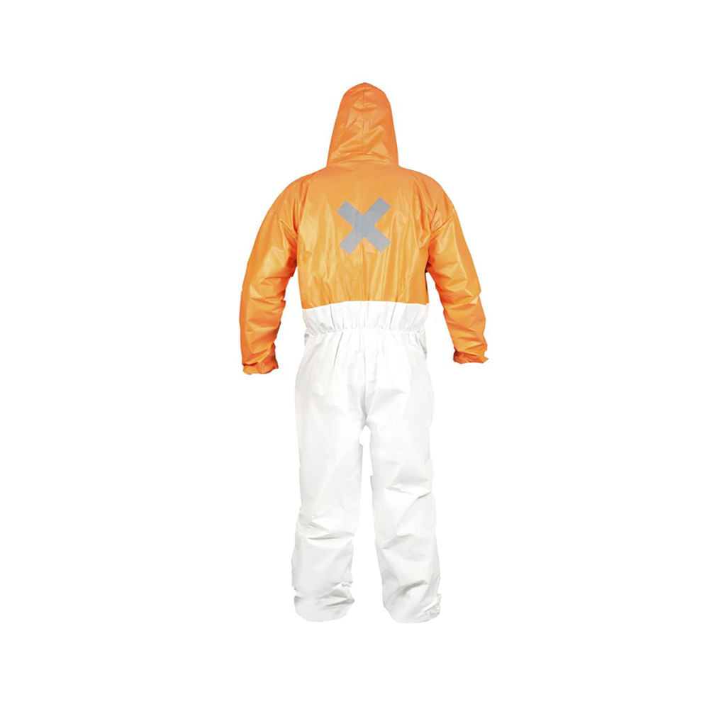 Obtenga protección total contra el polvo y los líquidos con el mono bicolor desechable Buzo Black Wolf. El mono desechable presenta un diseño de dos tonos, con una mitad superior de estilo geólogo naranja y una mitad inferior blanca. Experimente comodidad y seguridad con puños, tobillos y capucha elásticos, y cintas reflectantes en la parte delantera y trasera.