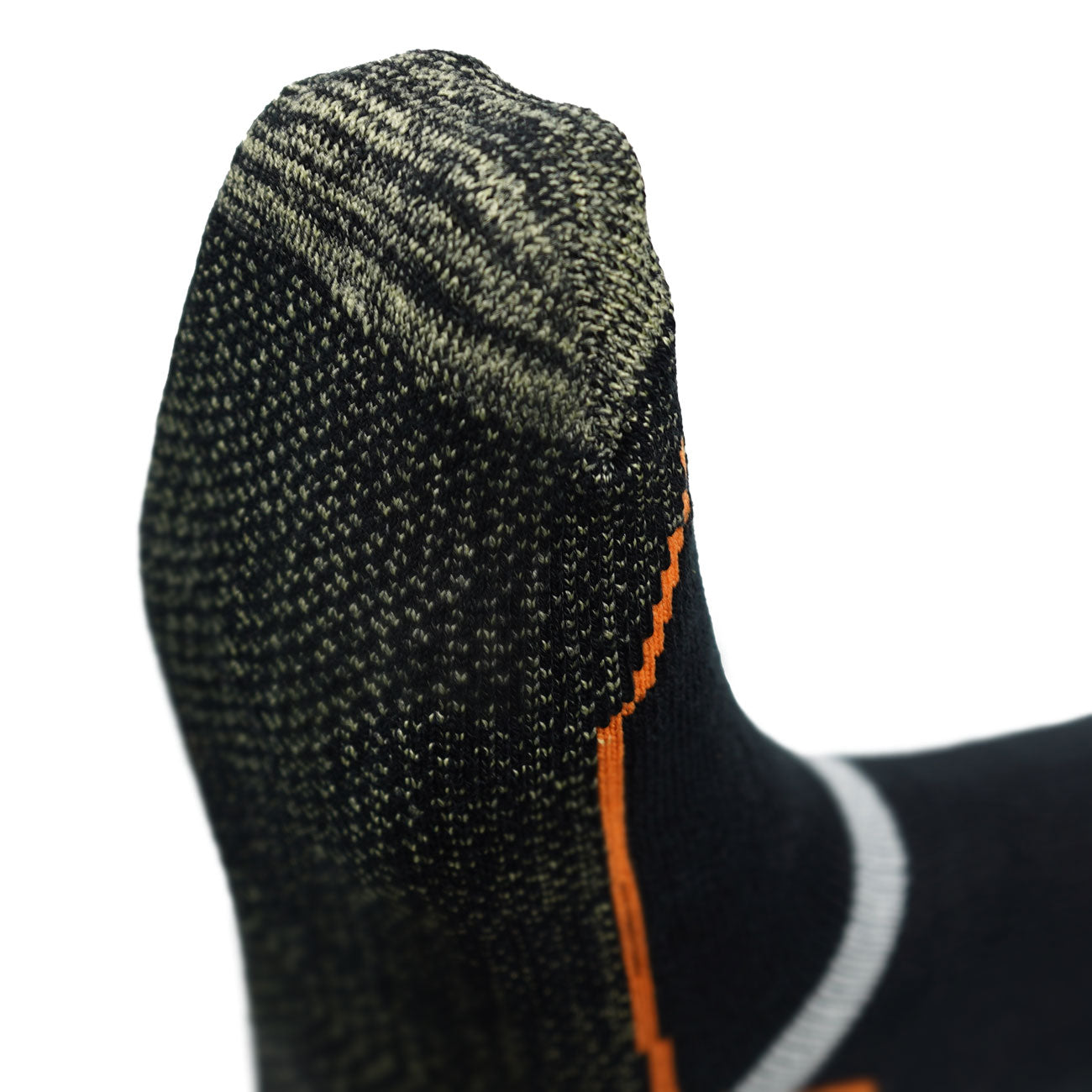 Fabricada con fibras de algodón y cobre, esta calceta térmica combina 80% algodón, 8% poliéster, 5% fibra de cobre, 5% spandex y 2% nylon, otorgando una gran aislación térmica, elasticidad y resistencia. El tejido reforzadoasegura mayor durabilidad, mientras que la fibra de cobre aporta propiedades de control bacteriano para mantener un mejor cuidado del pie.