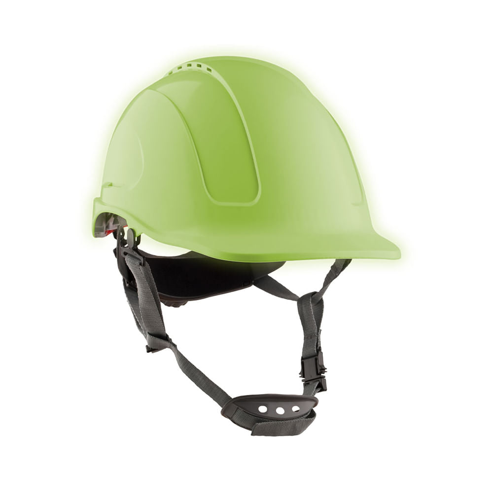 Con su capacidad para almacenar luz de fuentes naturales o artificiales durante el día, es el casco perfecto para una seguridad y visibilidad confiables en entornos de trabajo oscuros.