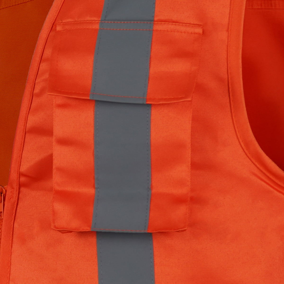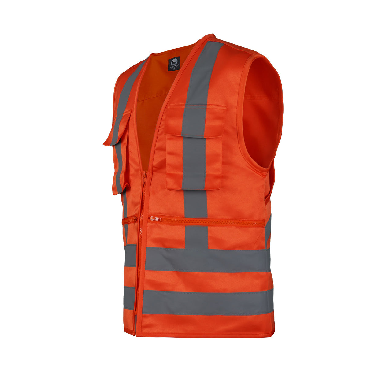 Incorpora cintas reflectantes en 360°, incluyendo doble banda horizontal inferior, cintas verticales frontales y diseño en “X” en la espalda, garantizando visibilidad completa desde cualquier ángulo y mejorando la seguridad en entornos de baja luminosidad o de tránsito vehicular. Sus bolsillos de parche en pecho y bolsillos laterales con cierre permiten almacenar herramientas, documentos y accesorios de forma ordenada y segura, manteniendo la operatividad del usuario en todo momento.