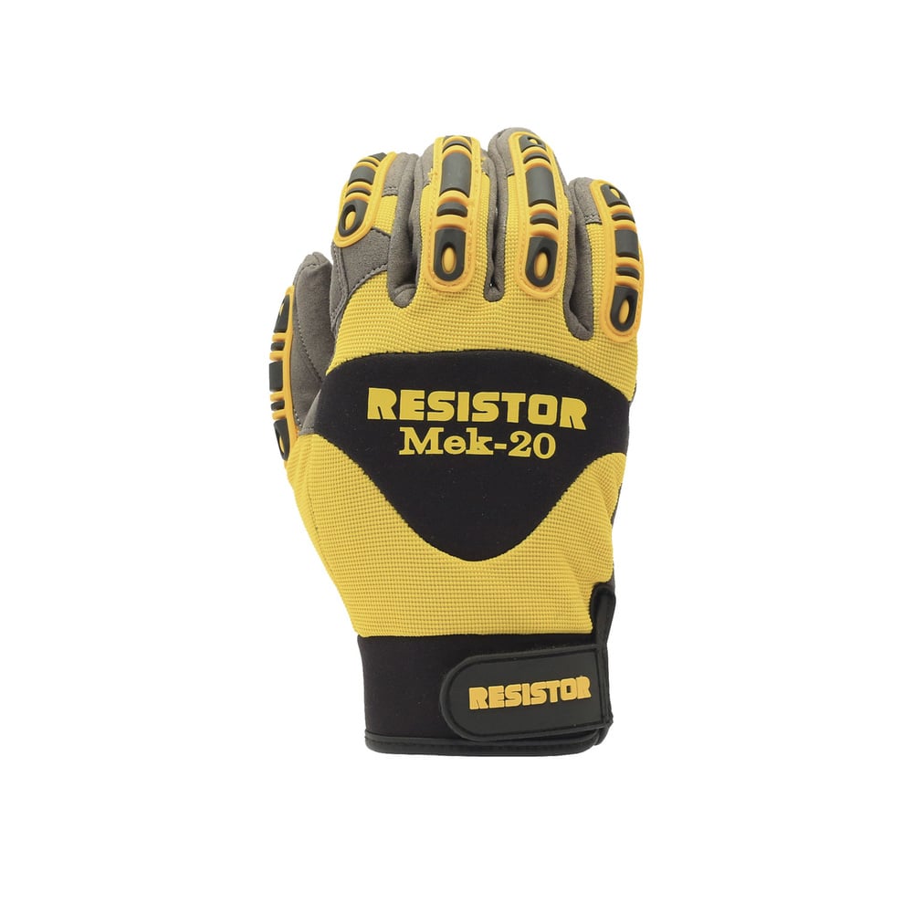 El par de Guantes de Seguridad Resistor Mek-20 proporciona una protección superior para las manos con su guante mecánico anti impacto fabricado en cuero sintético y spandex. Su palma está acolchada con Porón para mayor comodidad y la muñeca con velcro ajustable proporciona un ajuste seguro. Los dedos índice, medio y pulgar expuestos ofrecen mayor precisión, mientras que el dorso de TPR transpirable proporciona una protección superior contra impactos y abrasión. Las aplicaciones de caucho termoplástico flexible TPR permiten destreza y movilidad. ¡Experimente la máxima protección para las manos!