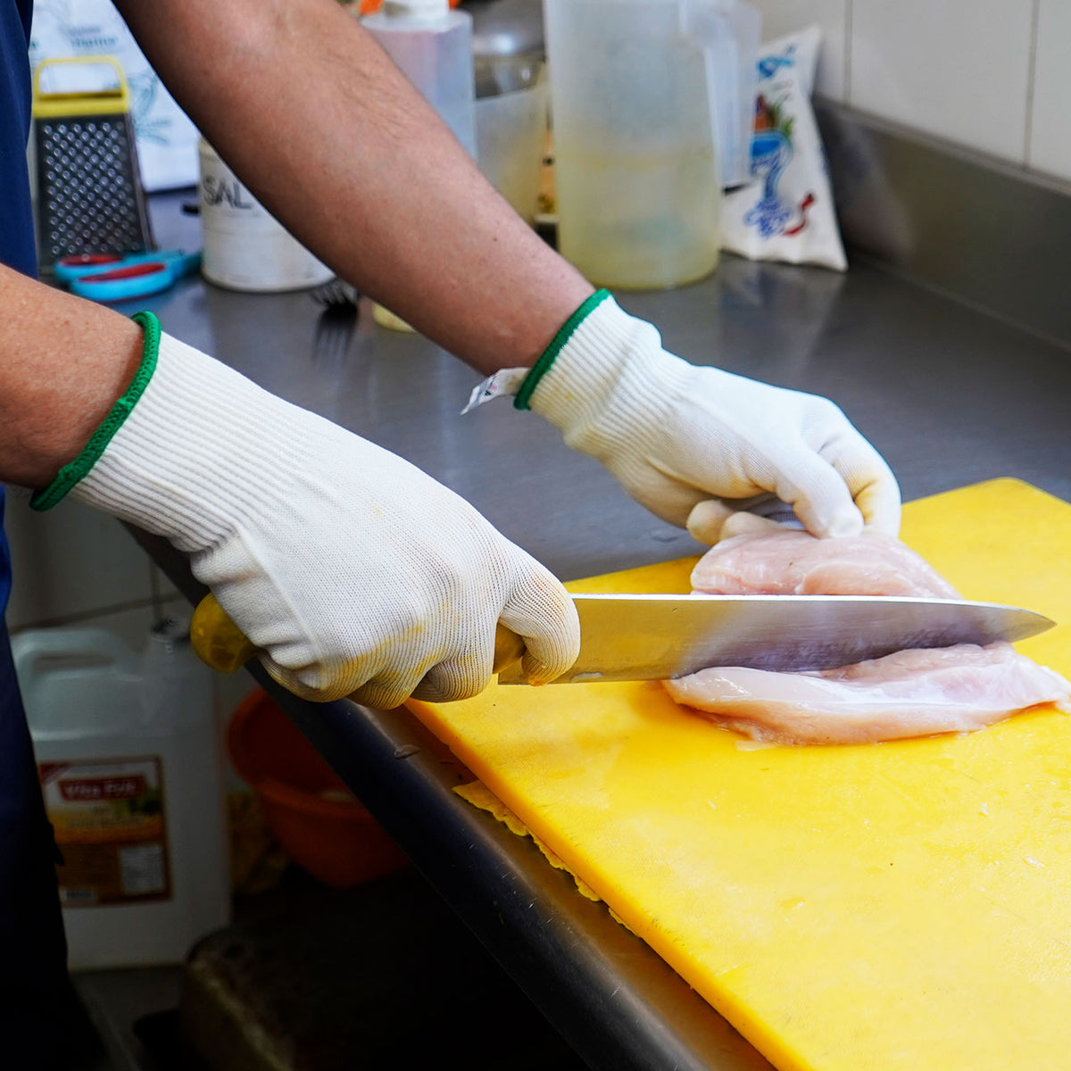 Certificados para el uso seguro en la manipulación de alimentos, estos guantes son perfectos para tareas que requieren protección anticorte y contacto higiénico, como en plantas de procesamiento, carnicerías, pescaderías o líneas de envasado.