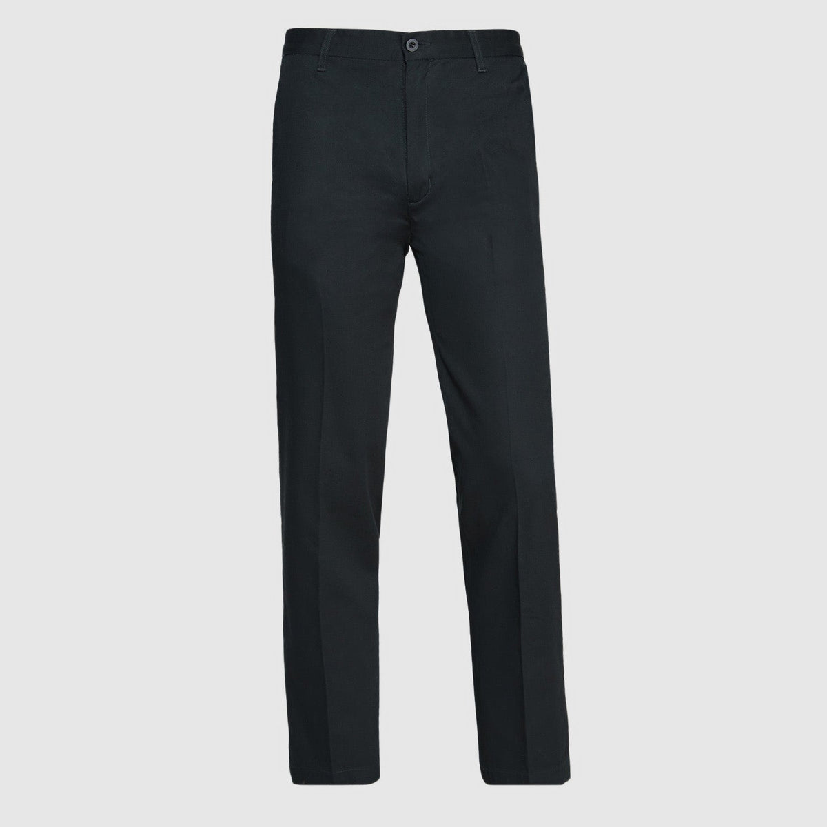 ¡Este pantalón clásico de tela gabardina de algodón es la opción perfecta para un look formal y cómodo! Con finas terminaciones interiores, costuras reforzadas y un tratamiento especial de fijación de color, este pantalón es duradero y evita la acumulación de calor, brindando la comodidad que necesitas. ¡Haz una impresión elegante con este pantalón negro sin pinzas!