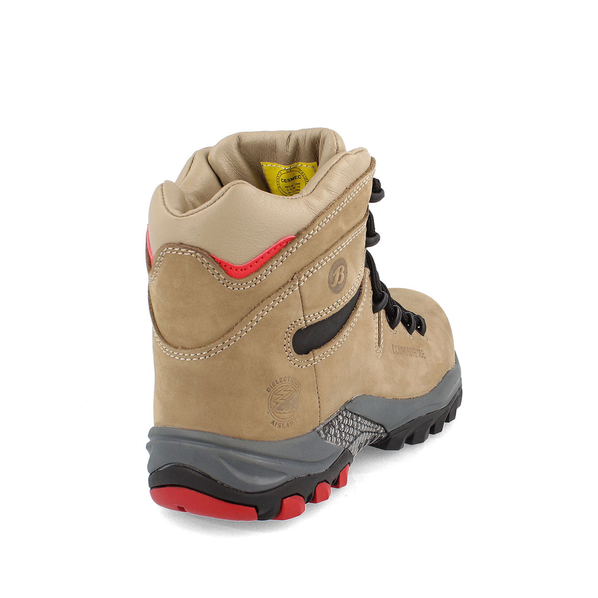 Su estructura incluye puntera de seguridad composite resistente a 200 J, y plantilla técnica de poliuretano con soporte de arco, pad de silicona y tratamiento antimicótico, garantizando confort, higiene y rendimiento. El interior está forrado con descarne de cuero curtido al cromo, y el cuello está fabricado en cuero napa para mayor suavidad y ajuste.